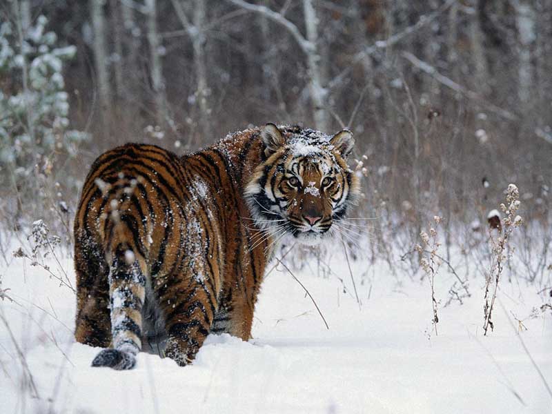 Амурский тигр (также известный как уссурийский тигр)- самый крупный тигр (tiger) на планете, относится к исчезающим видам животных. Вес крупного млекопитающего может превышать 300 килограммов. В некоторых источников сообщается о самцах весом до 390 кг, хотя сейчас столь крупные особи не встречаются. Длина тела 160-290 см, хвоста - 110 см. Уссурийский тигр является украшением дальневосточной тайги и объектом поклонения многих народов Дальнего Востока. Эта красивая, экзотически окрашенная кошка, по силе и мощи не имеет себе равных во всей мировой фауне, изображена на флаге и гербе Приморского края, а также на многих геральдических символах городов и районов края. История вида свидетельствует о том, что тигр - зверь легкоуязвимый, несмотря на его крупный размер и огромную физическую силу, а она такова, что он может волочить по земле тушу лошади более 500 м, способен развивать скорость до 80 км/ч по снегу, в скорости уступая лишь гепарду.